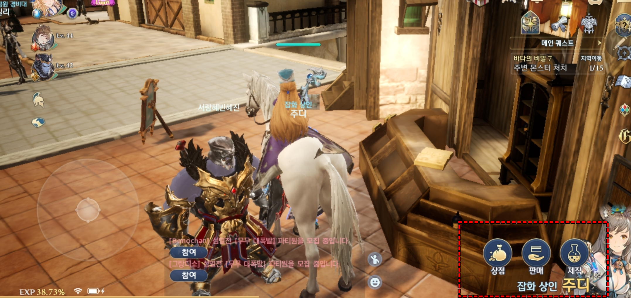 퀘스트 하다 보면 물약 값이 은근히 많이 나갑니다. 몰랐는데 마그나데아 잡화상인 주디를 이용해주세요. 그냥 상점서 사는 것보다 저렴하게 살 수 있습니다. 또한 그동안 획득한 재료로 직접 물약도 제작 가능하니 꼭 이용하세요! 귀찮아도 마그나데아로 가서 꼭 물약을 비축하고 퀘스트 하로 고고~