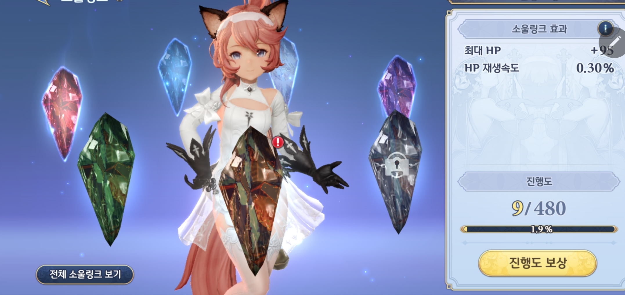 소울링크를 개방하면 아래에 진행도에 따라 진행도 보상도 꼭 챙겨주세요.