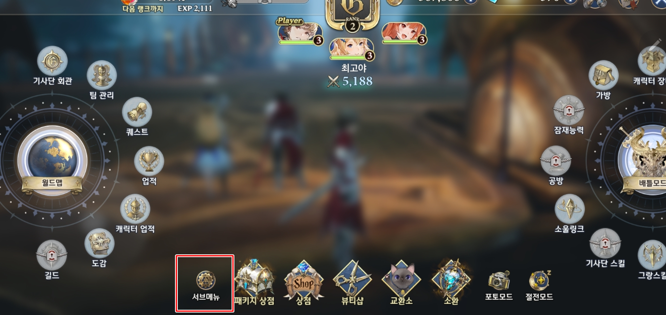 하단 제일 좌측에 있는 서브메뉴를 눌러주세요.