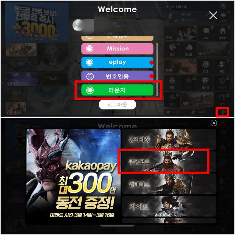 이 게임은 게스트모드로 할 수 있습니다. 다만 데이터가 유실될 수 있어서 구글 플레이 계정으로 가입할 수 있는데요. 중국 게임은 언제나 개인정보 넘어가는 게 걱정되시죠? 걱정되시면 쿠폰번호 입력을 사용할 수 없어요.