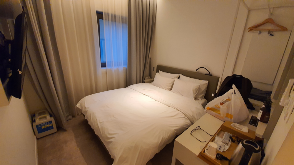 일이 너무 늦게 끝나서 집까지 집까지 2시간 거리를 가기 너무 힘들었습니다. 자연스레 가성비 호텔을 검색 끝에 에이치 에비뉴 호텔 이대점을 찾았는데요. 쿠폰 특가로 35,000원에 1인 비즈니스룸에서 숙박할 수 있었습니다. 주변 모텔보다 싸서 좋았는데요.