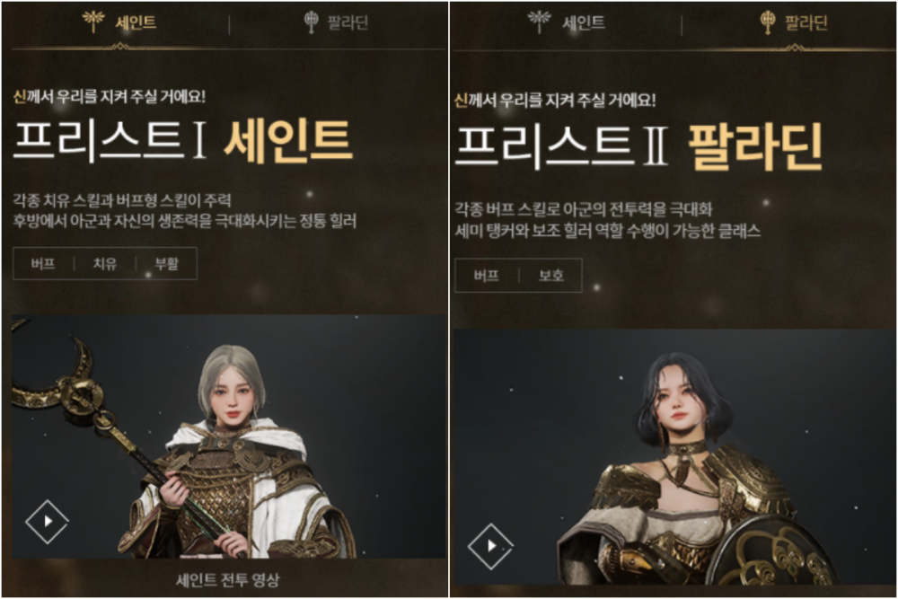 일단 부계정으로 가장 먼저 키울 1순위인 프리스트입니다. 자신의 본캐릭이 워리어 계열, 어쌔신이라면 세인트를 쫄로 키워주시고, 원거리 딜이라면 버프로 공격력을 올려줄 팔라딘을 부캐릭터로 키우실 것을 추천합니다.
