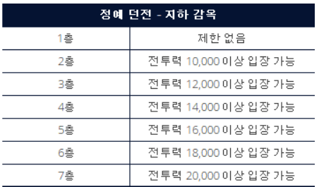 이제 지하 감옥 7층을 아무나 들어갈 수 없고 전투력 제한이 생겼어요. 대신 다른 층들 입장 제한은 많이 낮아졌네요. 그래도 기존에 2만 넘은 유저들과의 레벨 격차는 따라가기 힘들 것 같습니다.