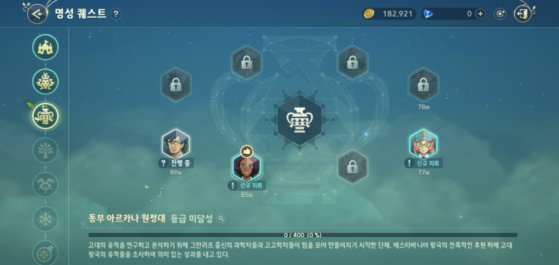 각 세력별로 명성 퀘스트를 진행해서 일정 명성치 등급을 달성해야 메인 퀘스트를 진행할 수 있습니다. 월드 오브 워크래프트에서 따온 것 같습니다. 일단 게임에 할 숙제가 많다는 뜻이죠.