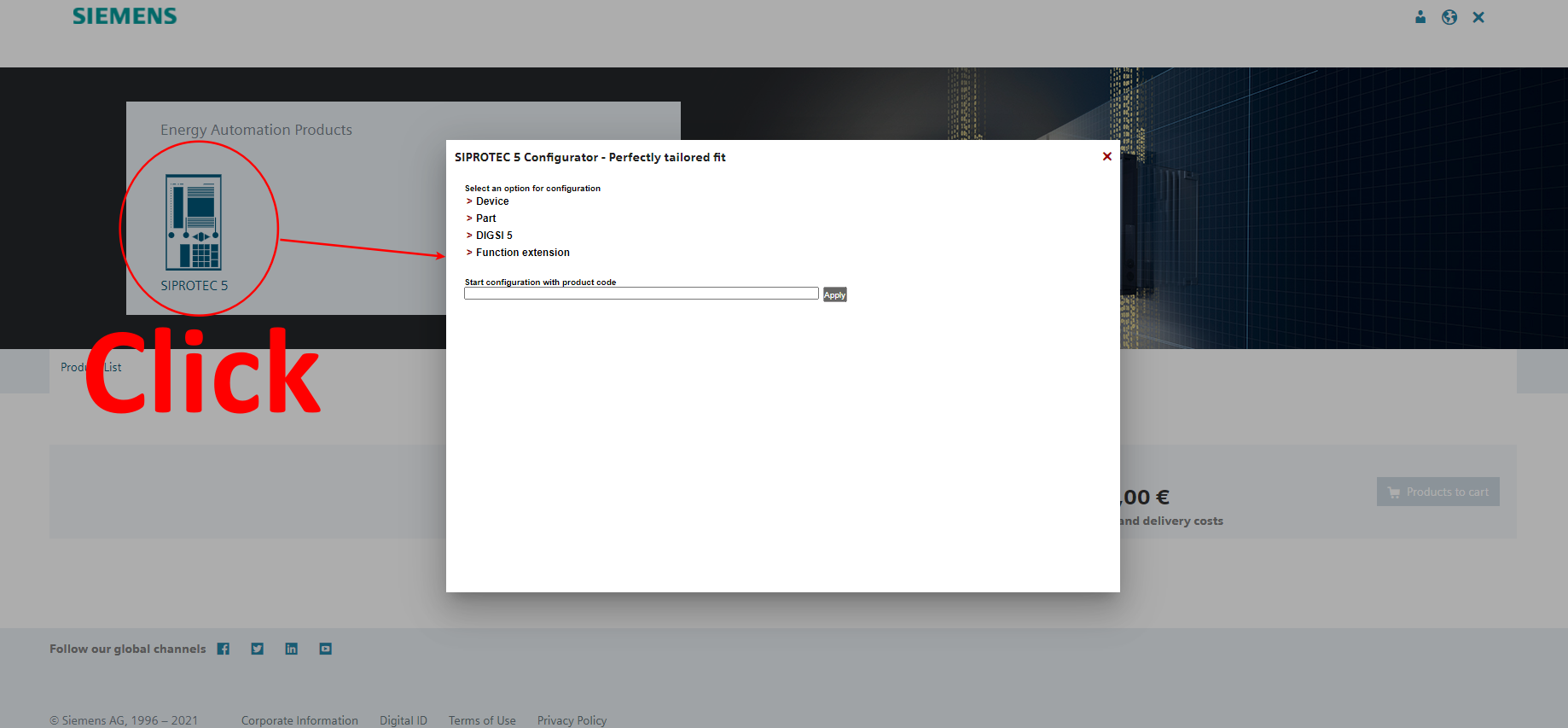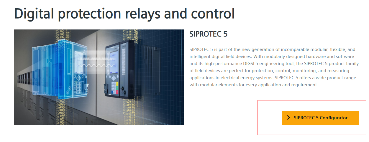 지멘스 계전기 최고의 라인업에 해당하는 Protection Relay SIPROTEC 5를 선정해보겠습니다. 우선 SIPROTEC 5 Configurator로 접속해주세요. 아래에 링크를 남겨드립니다.
