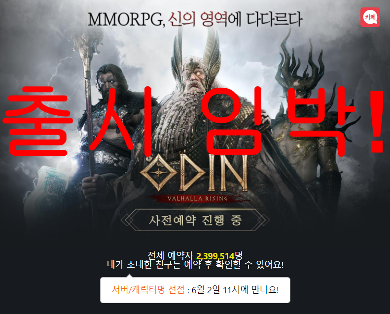 카카오 게임즈에서 기대작으로 출시 예정인 오딘 발할라 라이징 출시가 임박했습니다. 5월 마지막 날 현재 확인 결과 뜨거운 사전예약 수치인데요. 무려 240만 명에 육박하는 수치입니다. 그럼 6월 29일 출시가 예정되어 있는 오딘 발할라 라이징이 기대되는 이유, 그리고 사전 예약 이벤트에 대하여 살펴보겠습니다.